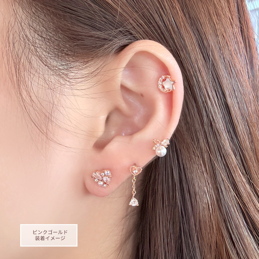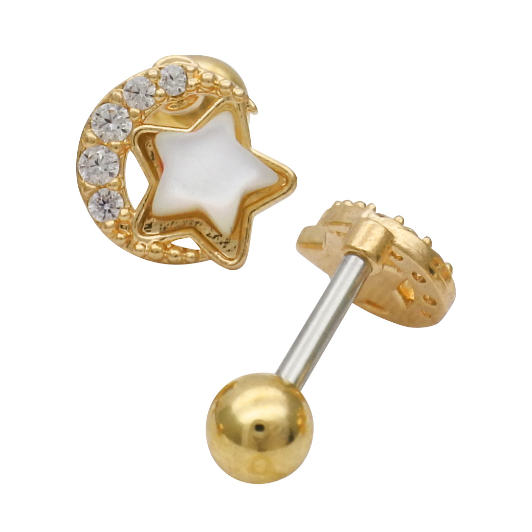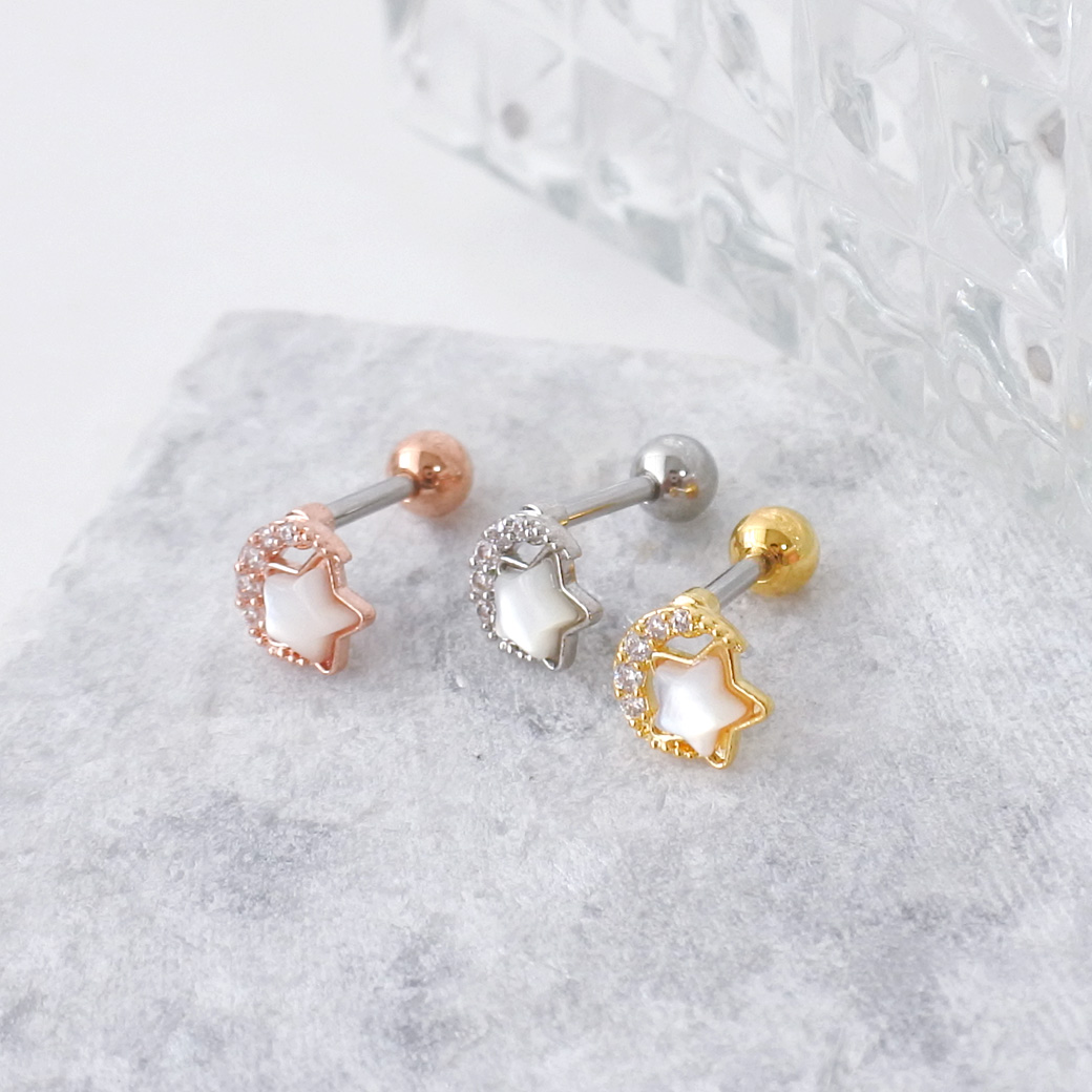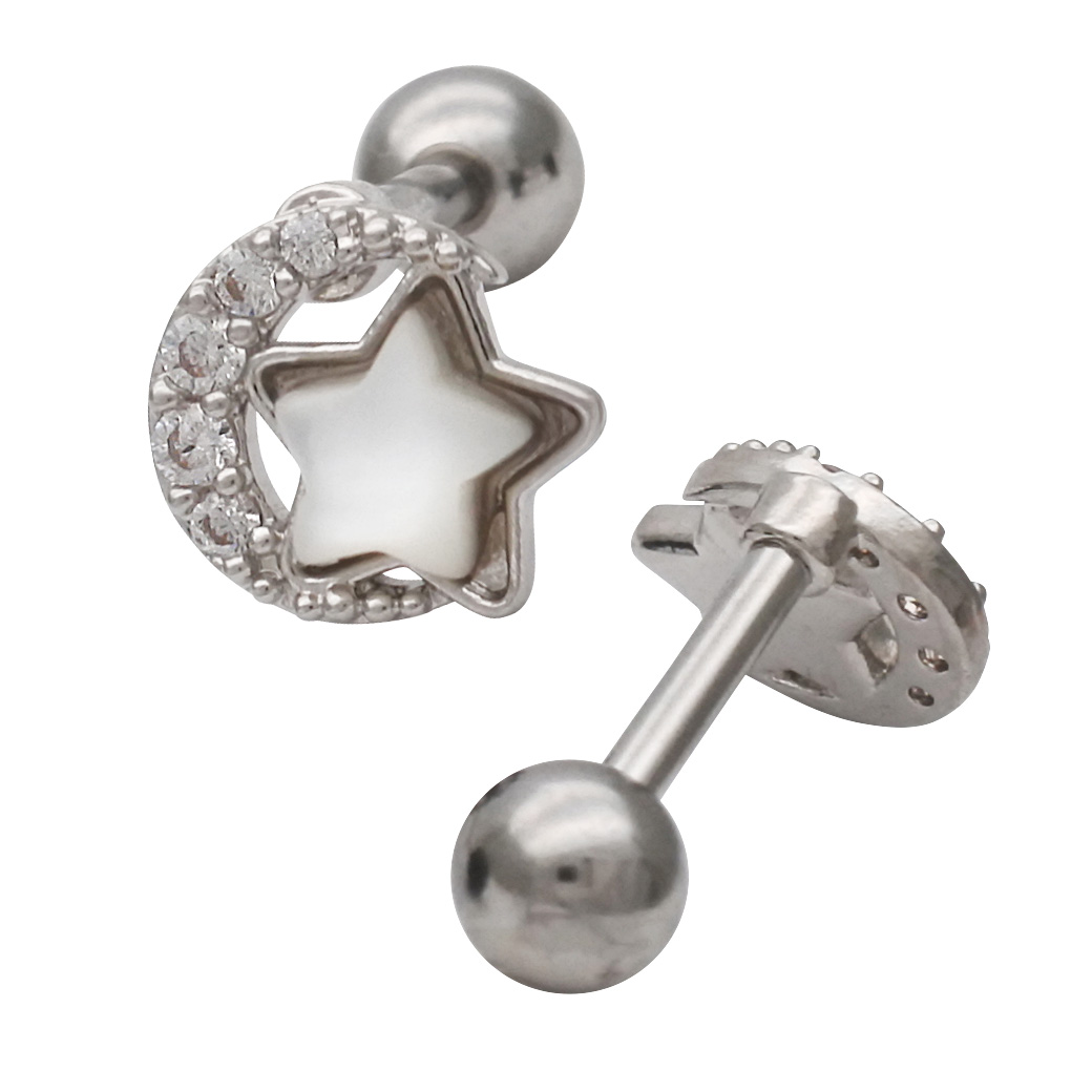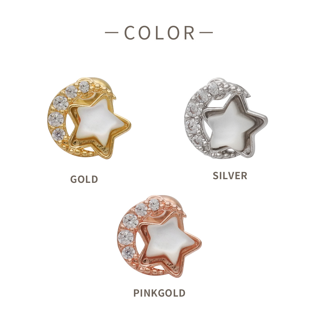 【4月新作】[14G 16G ]軽やかにきらめく透け感が美しいシアースター &ムーン ストレート 軟骨ピアス ヘリックス ボディピアス 1154