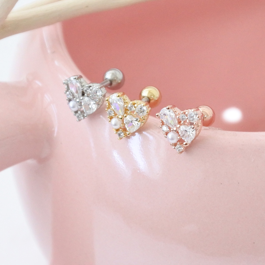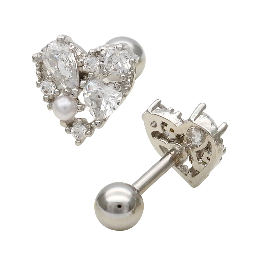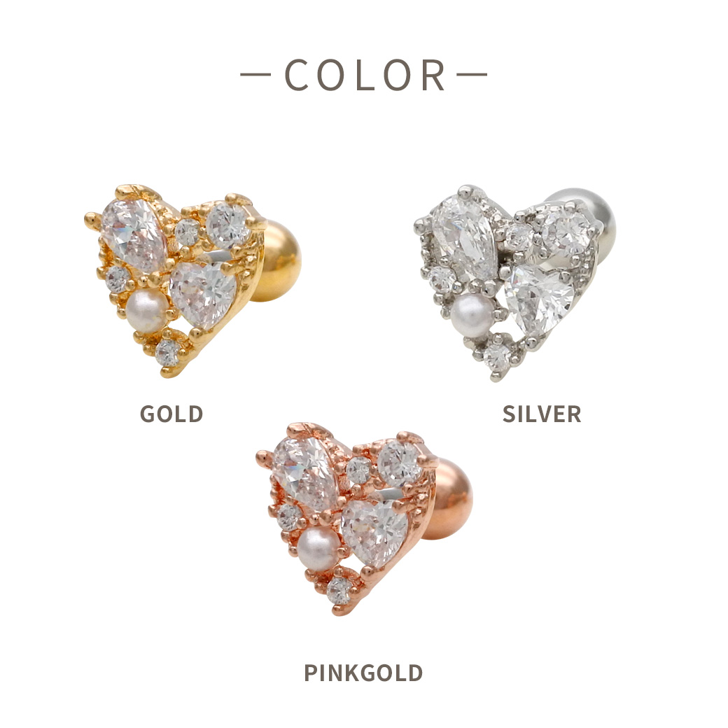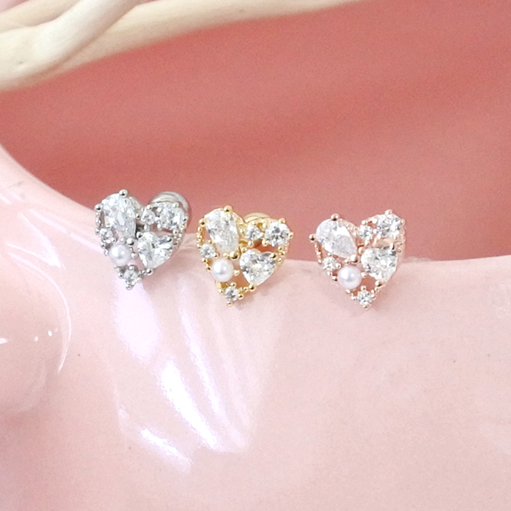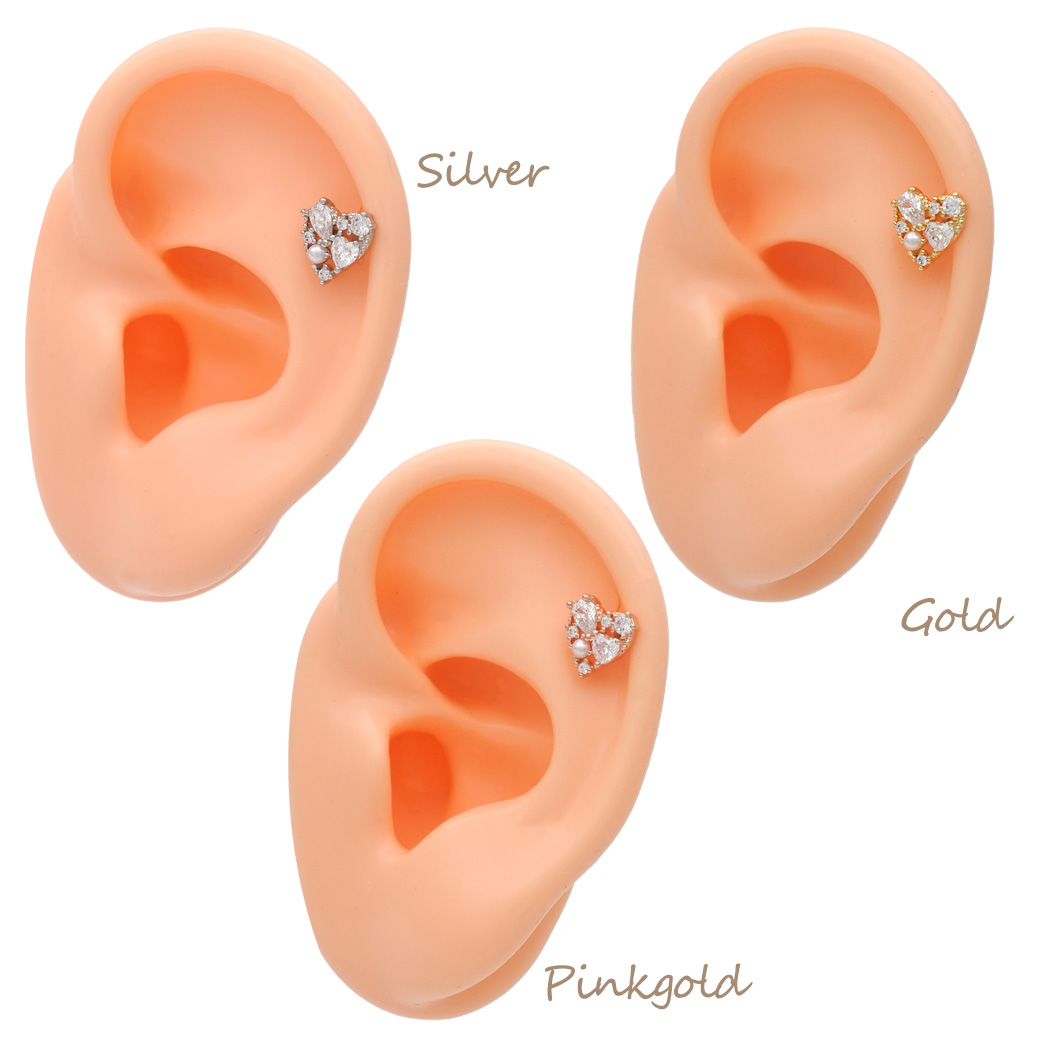 【3月新作】[14G 16G ]キュービックジルコニア ×パール 華やかさと上品さを兼ね備えた、主役級ハート ストレート 軟骨ピアス ヘリックス ボディピアス 0405