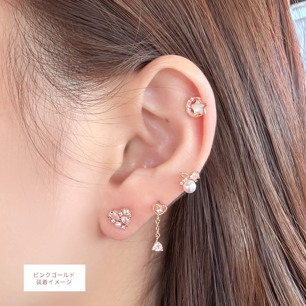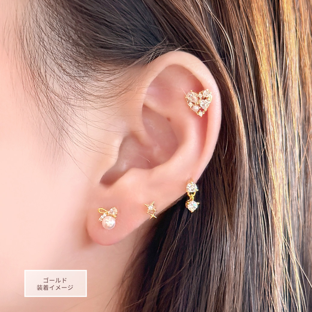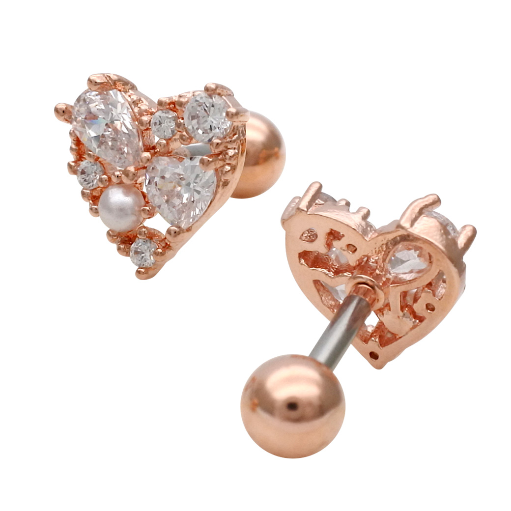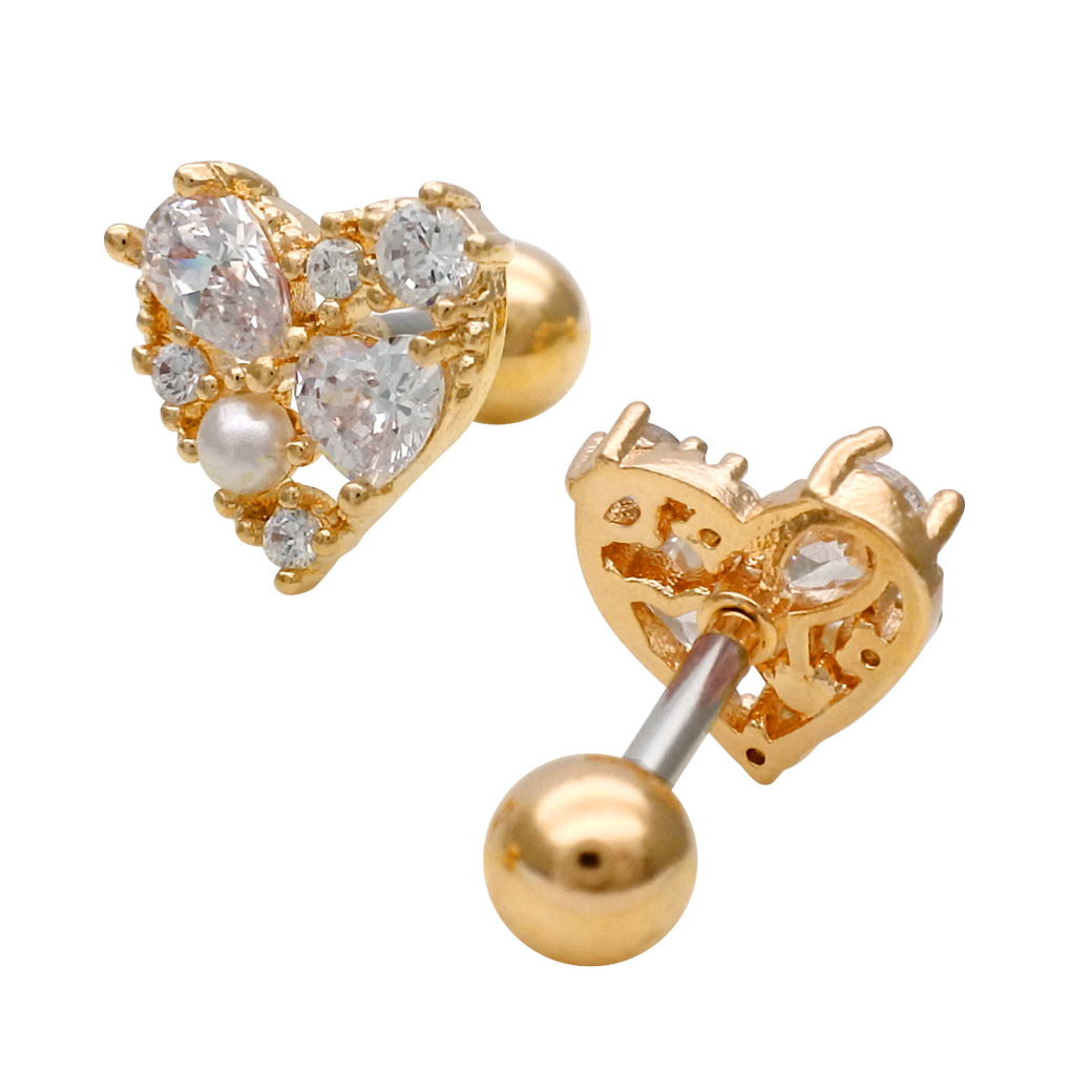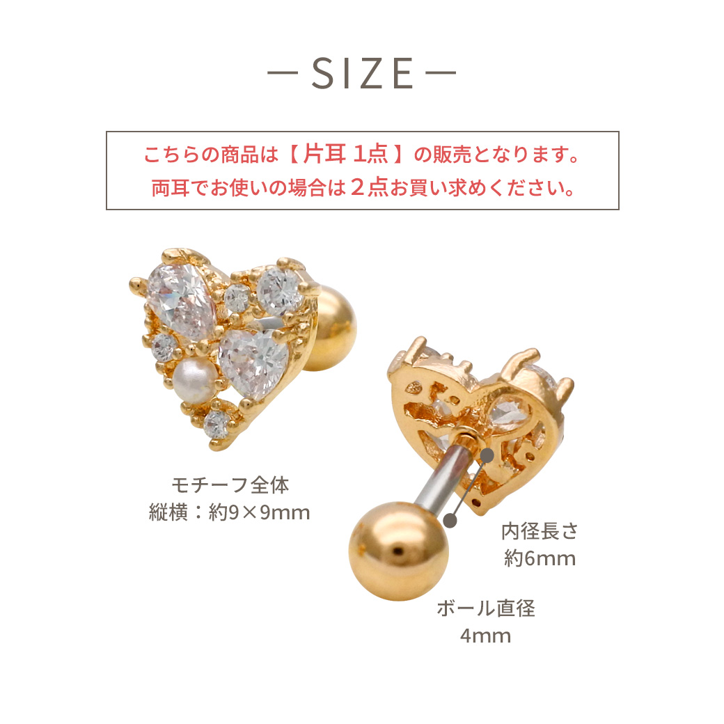 【3月新作】[14G 16G ]キュービックジルコニア ×パール 華やかさと上品さを兼ね備えた、主役級ハート ストレート 軟骨ピアス ヘリックス ボディピアス 0405