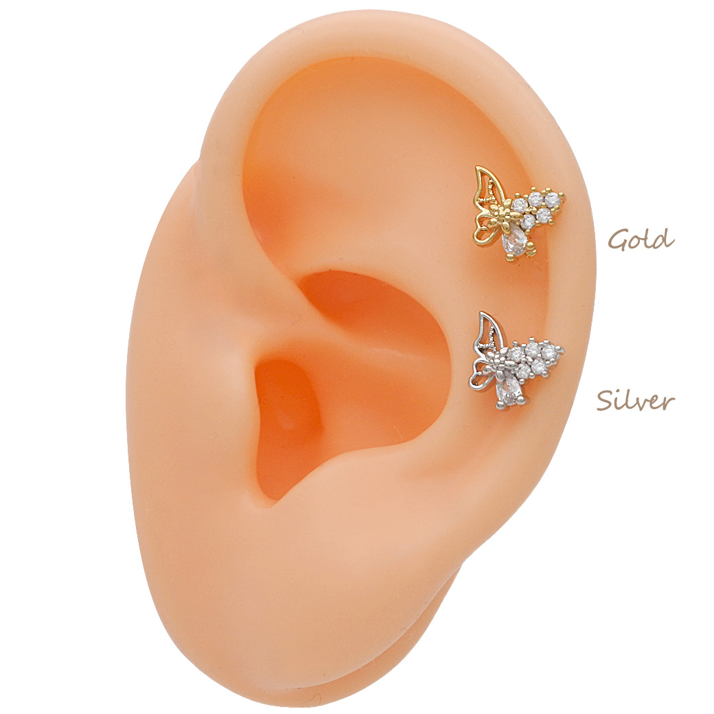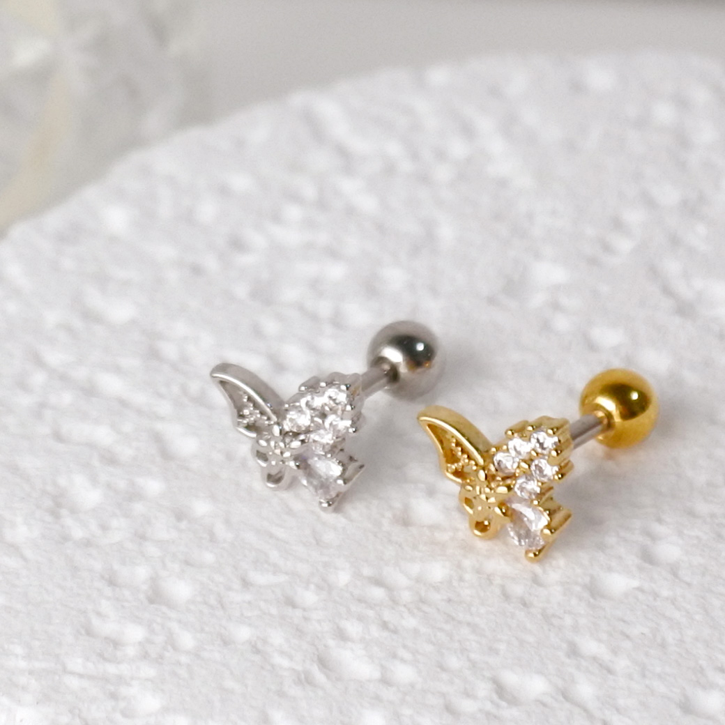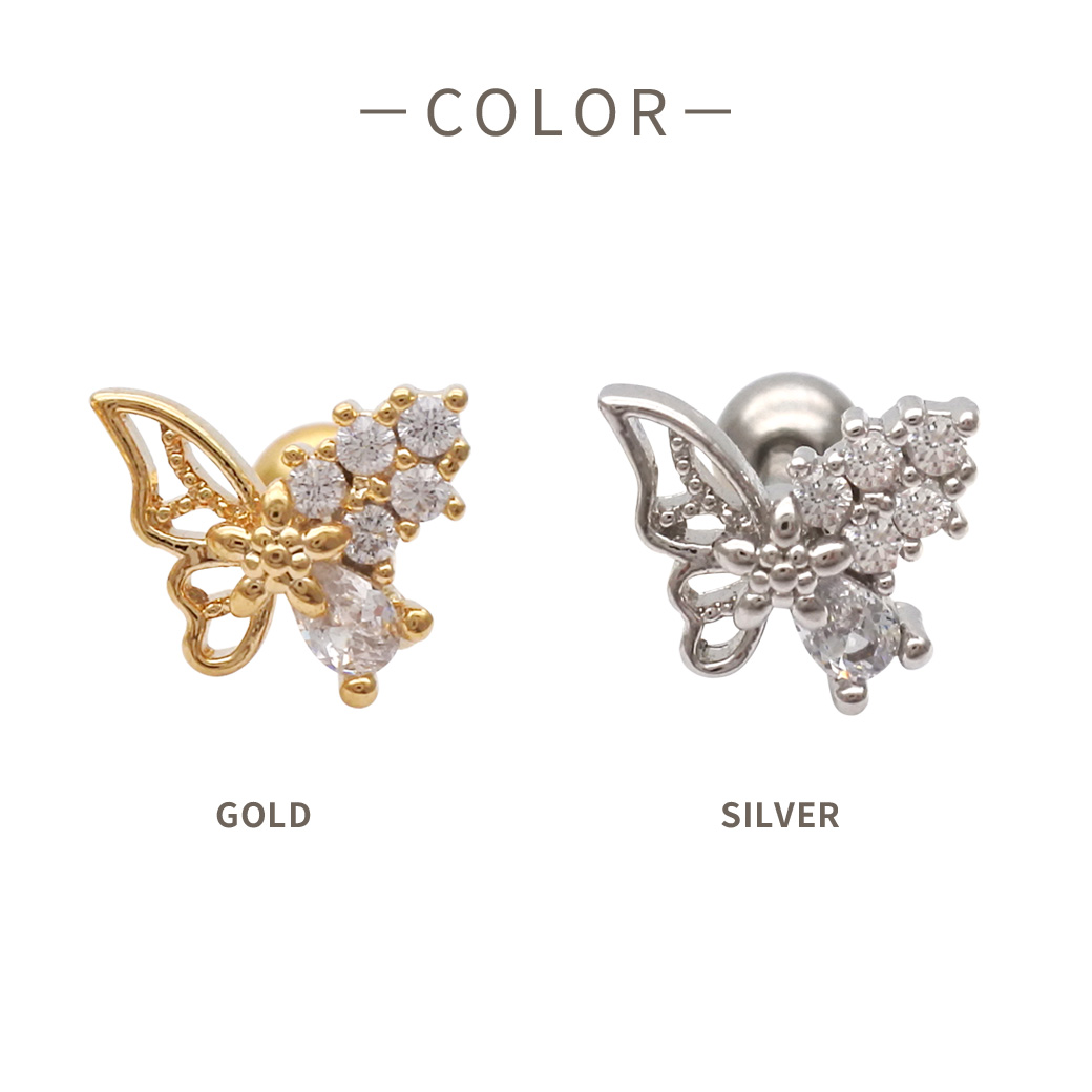 [14G 16G ]細やかなキュービック がやさしく輝く繊細バタフライ デザイン ストレート 軟骨ピアス ヘリックス ボディピアス 0419