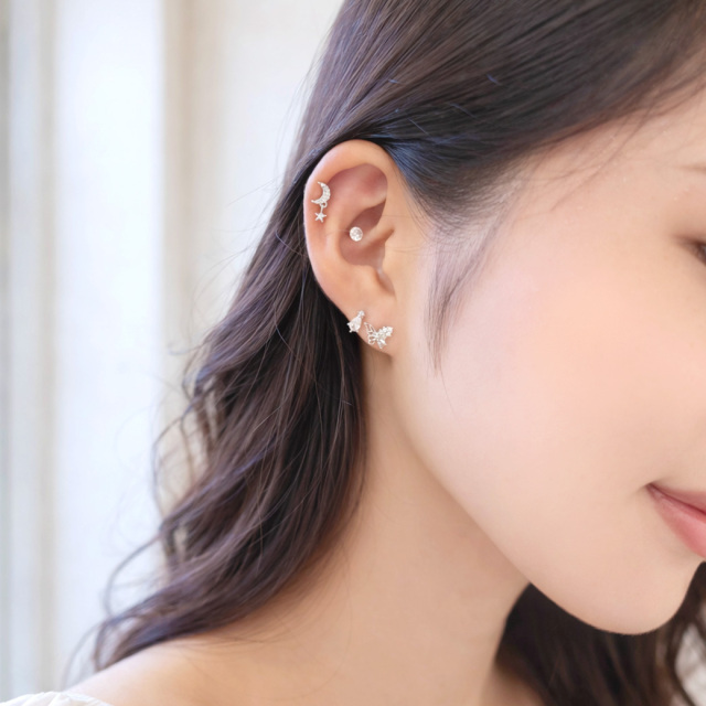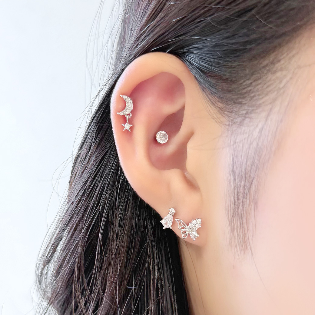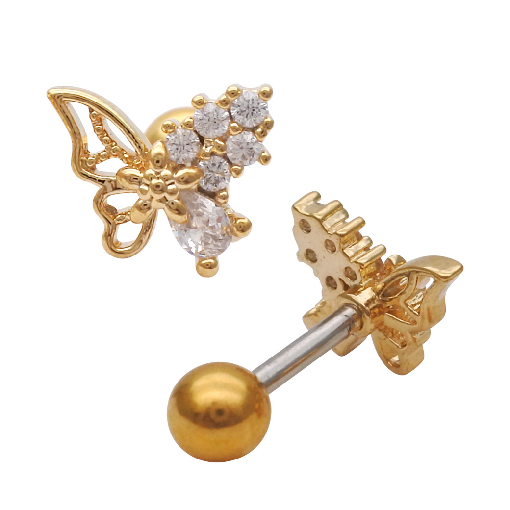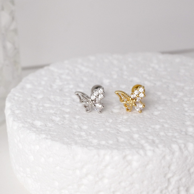 [14G 16G ]細やかなキュービック がやさしく輝く繊細バタフライ デザイン ストレート 軟骨ピアス ヘリックス ボディピアス 0419