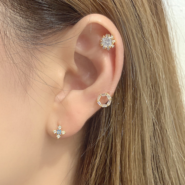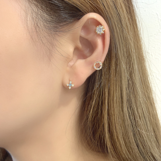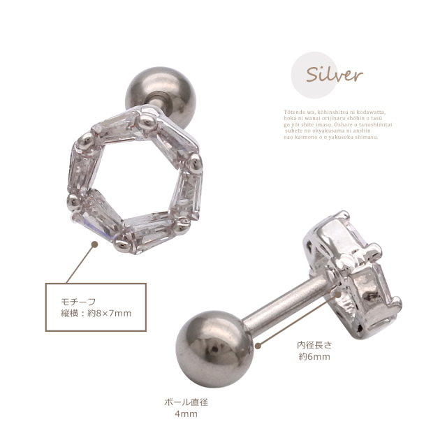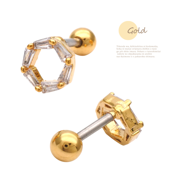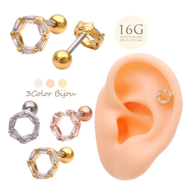 [16G]キュービックが上品な輝きを放つ サークル デザイン ストレート軟骨ピアス ヘリックス ボディピアス 0450