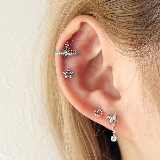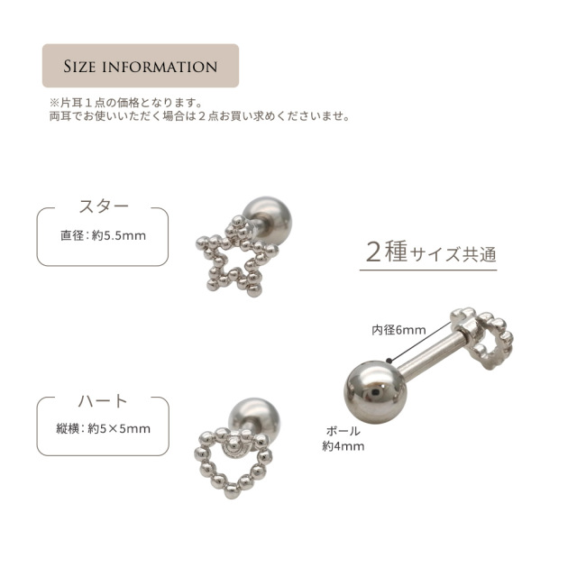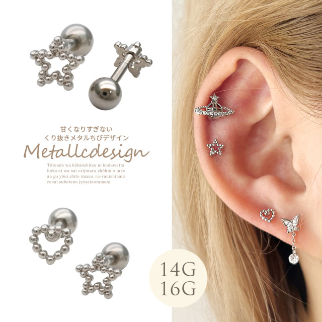 [14G 16G ]甘すぎないくり抜きメタル ちび スター star ハート heart ストレート 軟骨ピアス ヘリックス ボディピアス 0511