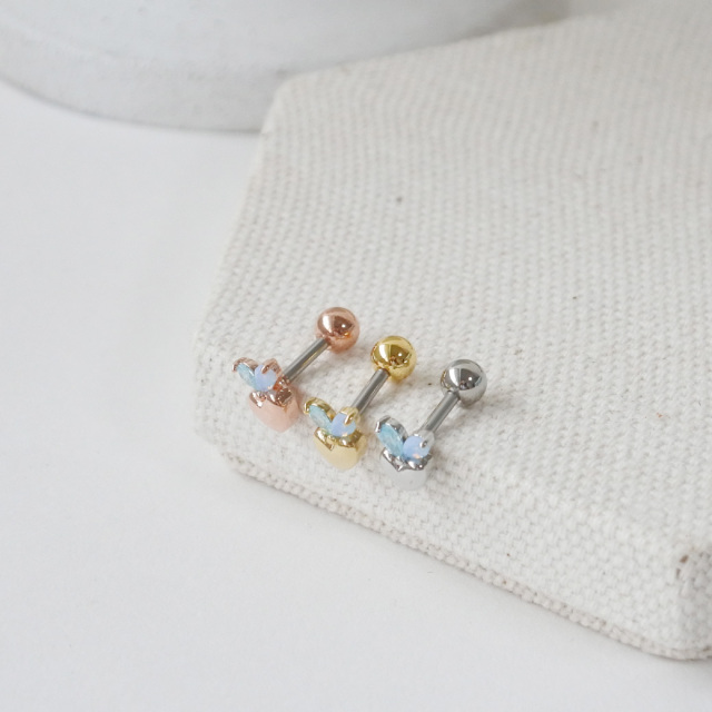 [14G 16G ]ぷっくりハート と淡く輝くブルー キュービック を合わせたデザイン heart ストレート 軟骨ピアス ヘリックス ボディピアス 0637
