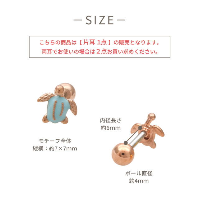 [14G 16G ]合わせやすい小さいサイズ感がかわいい 幸運を呼ぶとされる 海亀 ホヌ モチーフストレート 軟骨ピアス ヘリックス ボディピアス 0686