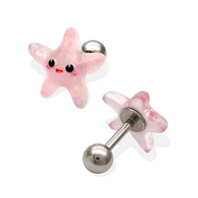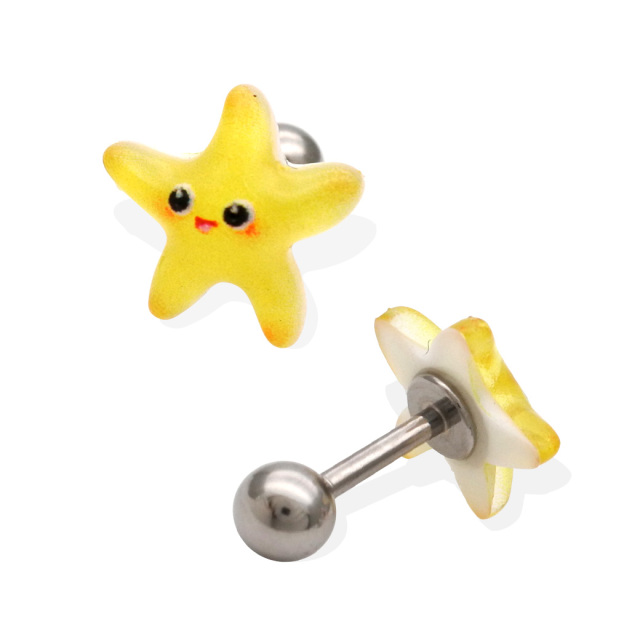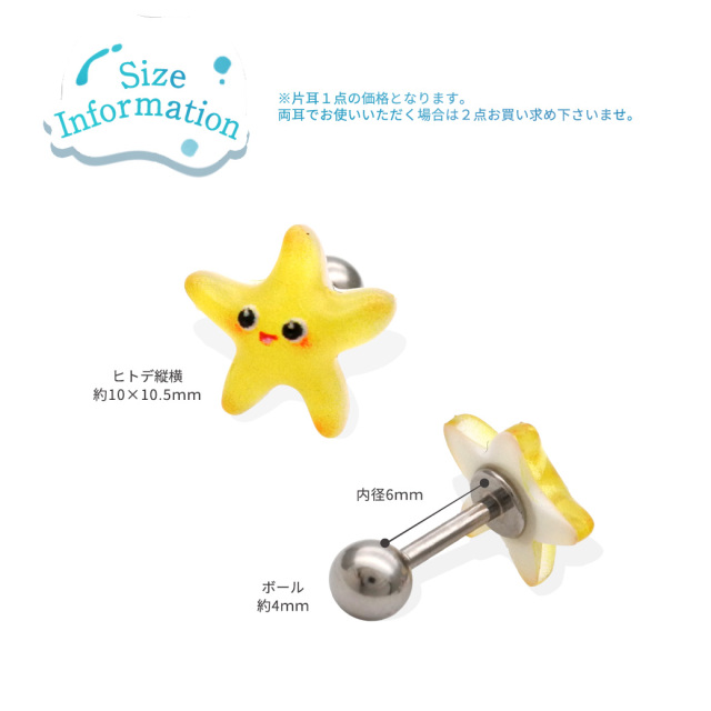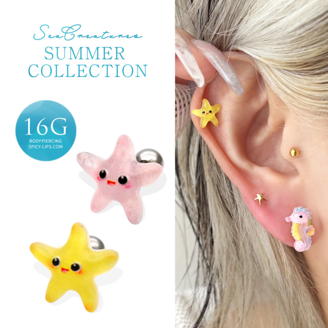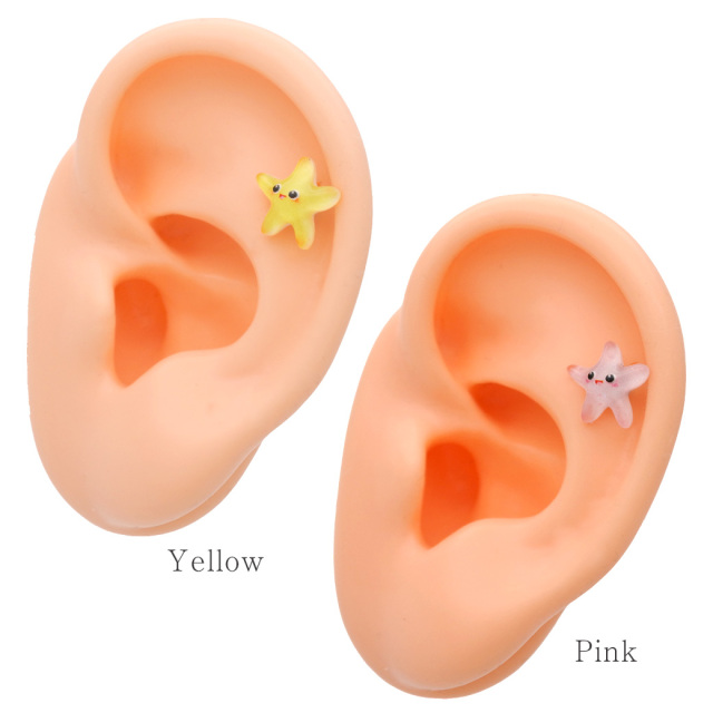 [16G ]これからの季節にピッタリ♪ 夏らしい透明感のある ヒトデ モチーフ ストレート 軟骨ピアス ヘリックス ボディピアス 0810
