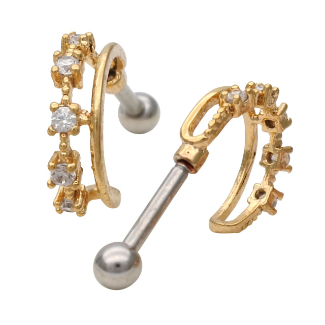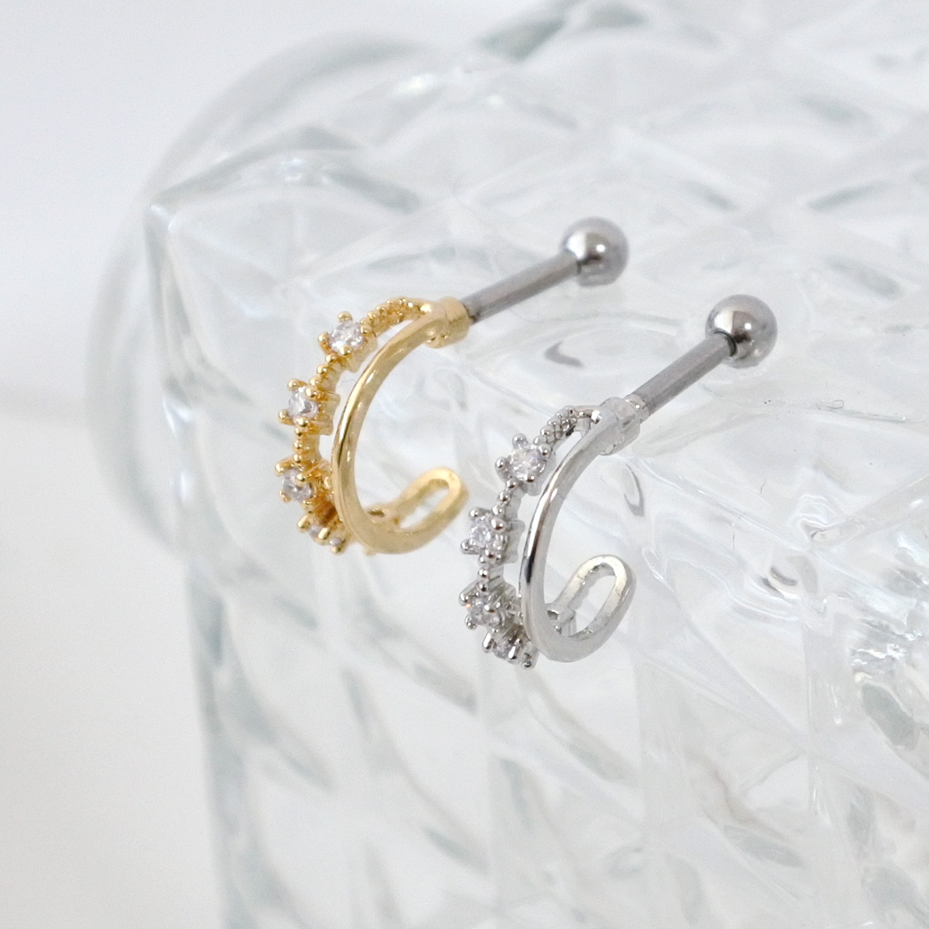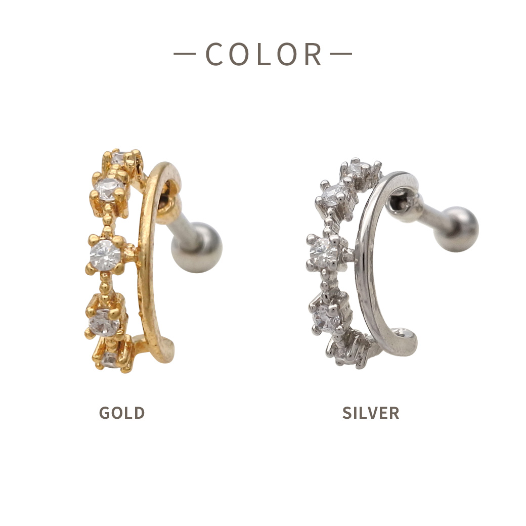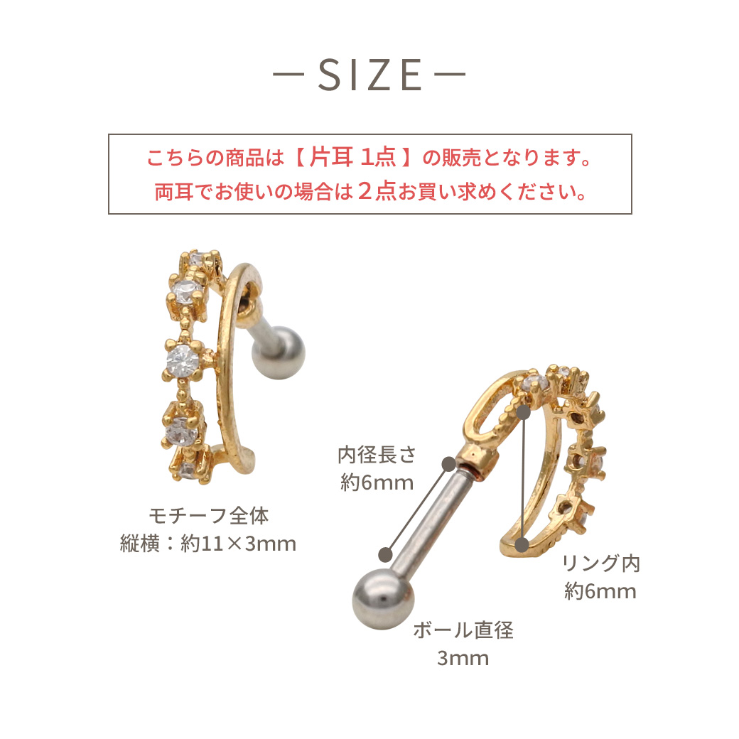 【3月新作】[16G ]さりげないのに印象アップ 煌めくラインジュエル リング デザイン ストレート 軟骨ピアス ヘリックス ボディピアス 1018