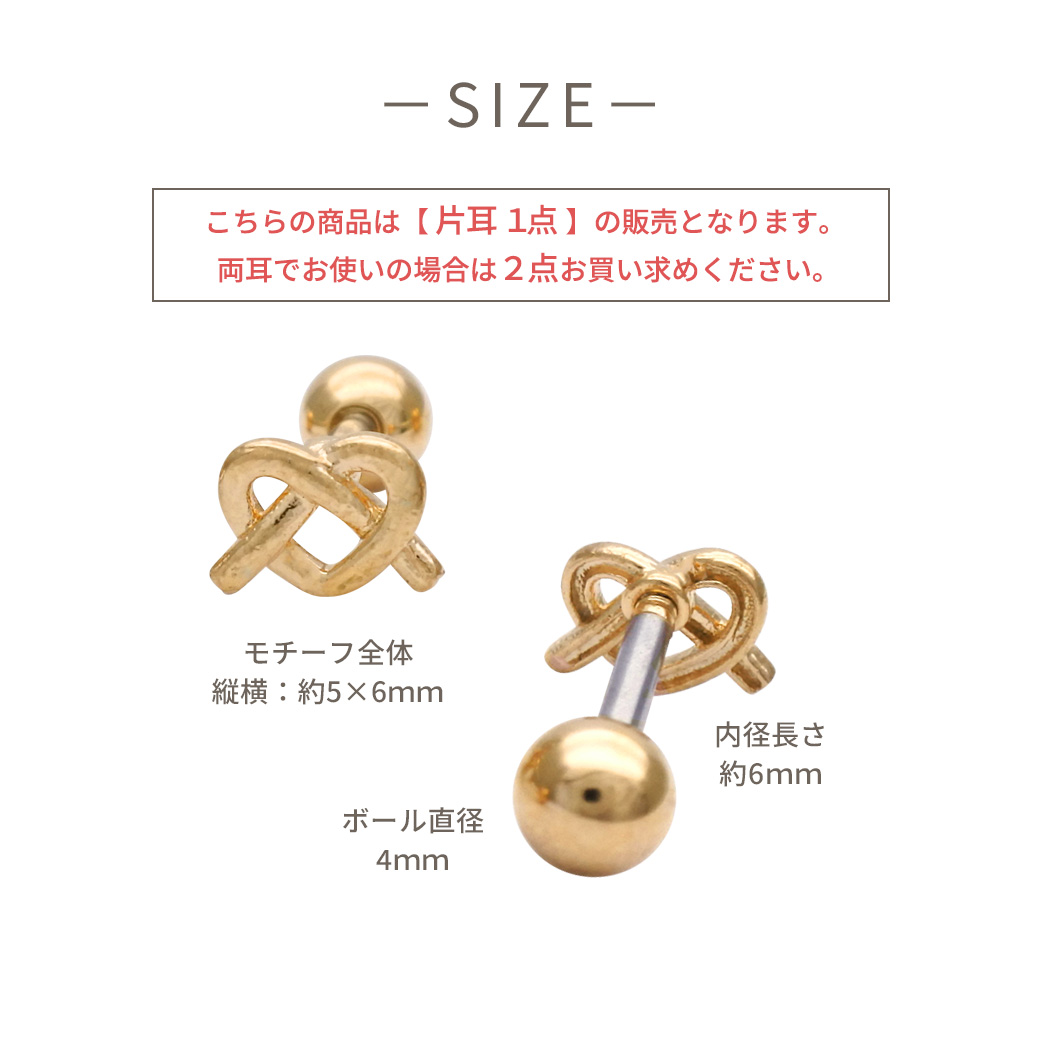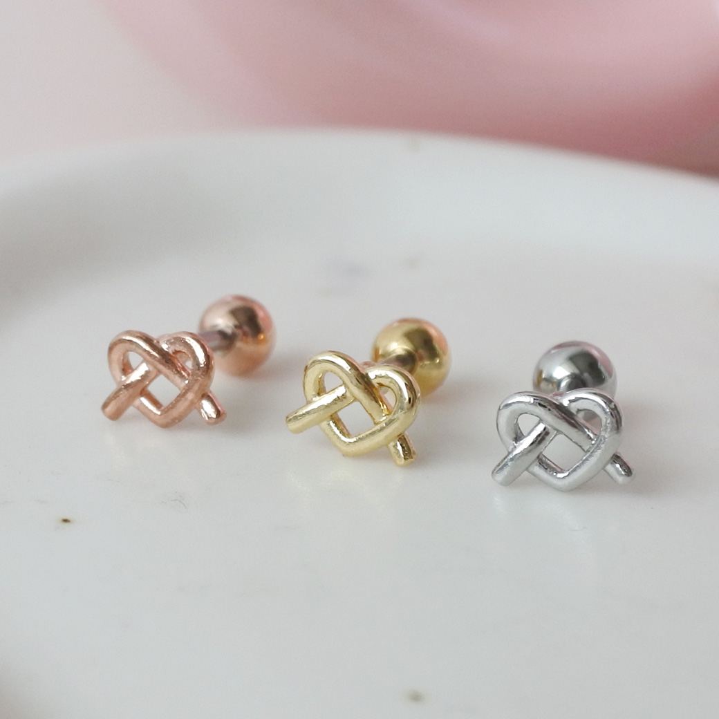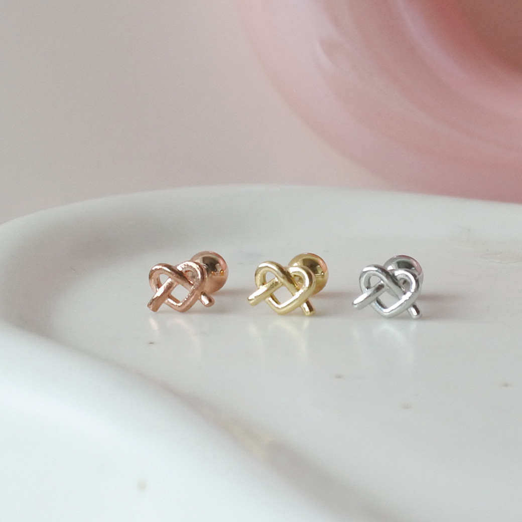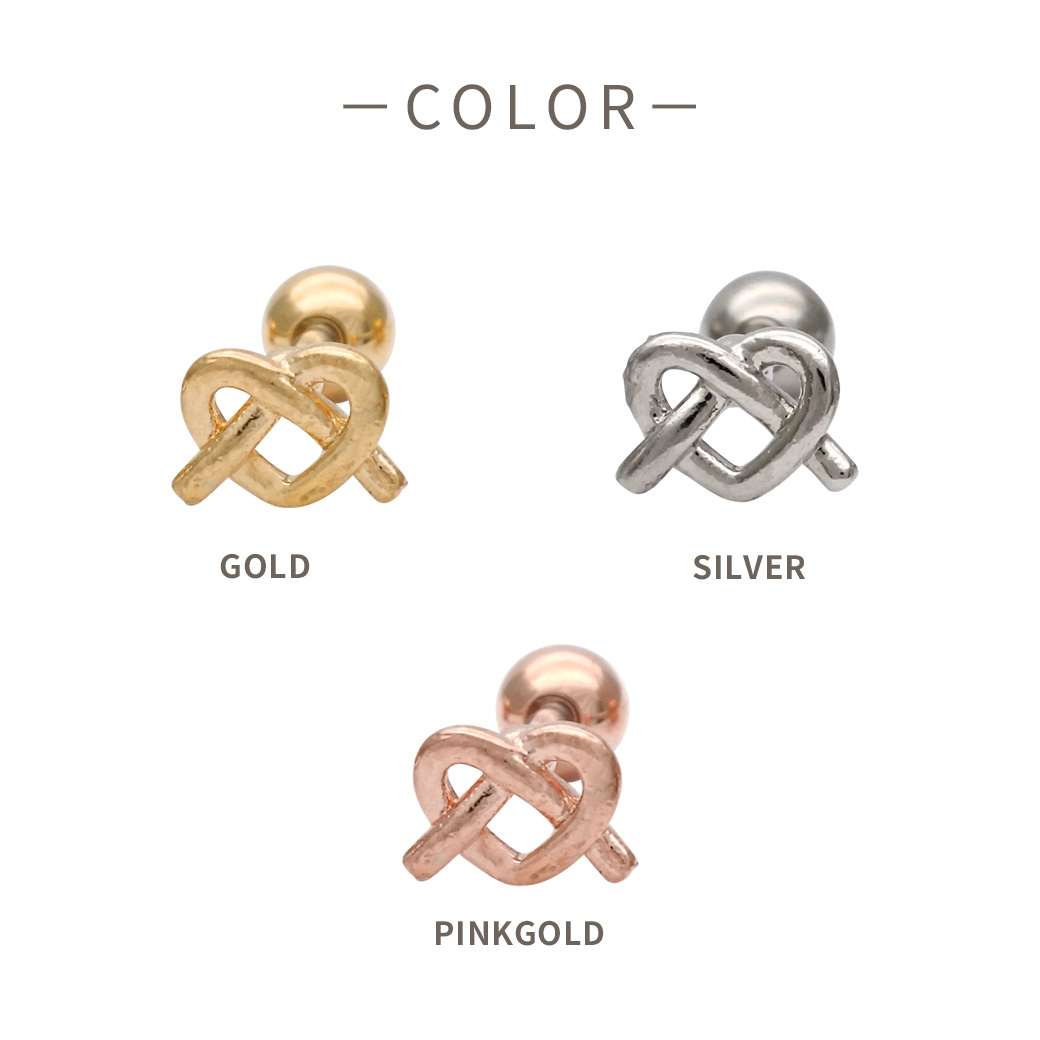 【4月新作】[14G 16G ]さりげなく個性をプラスしてくれる 甘すぎないハート ×結びデザイン ストレート 軟骨ピアス ヘリックス ボディピアス 1035