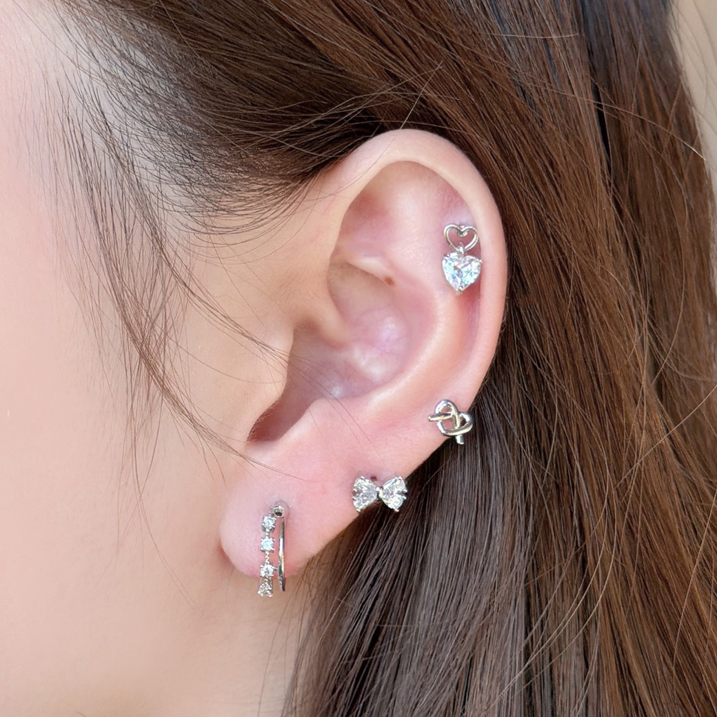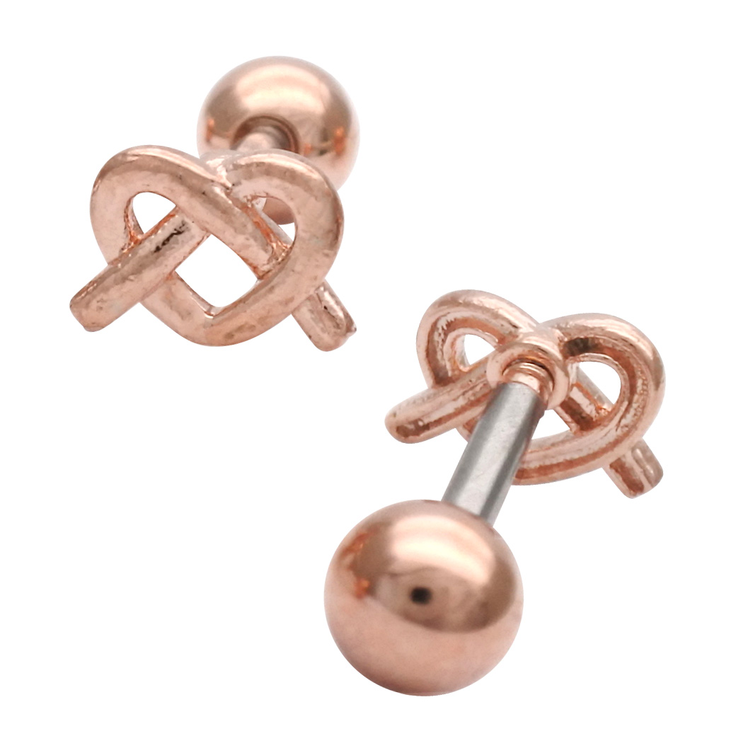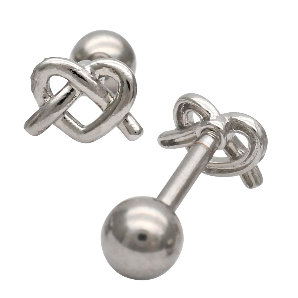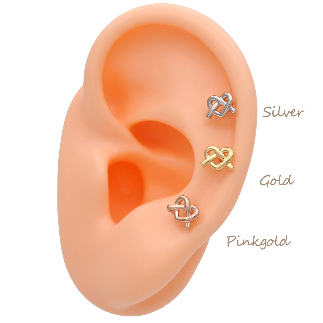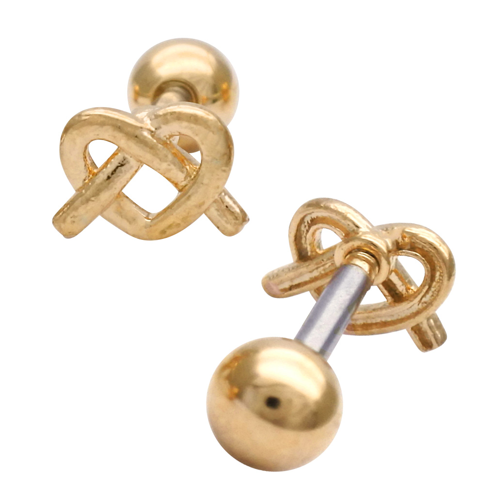 【4月新作】[14G 16G ]さりげなく個性をプラスしてくれる 甘すぎないハート ×結びデザイン ストレート 軟骨ピアス ヘリックス ボディピアス 1035