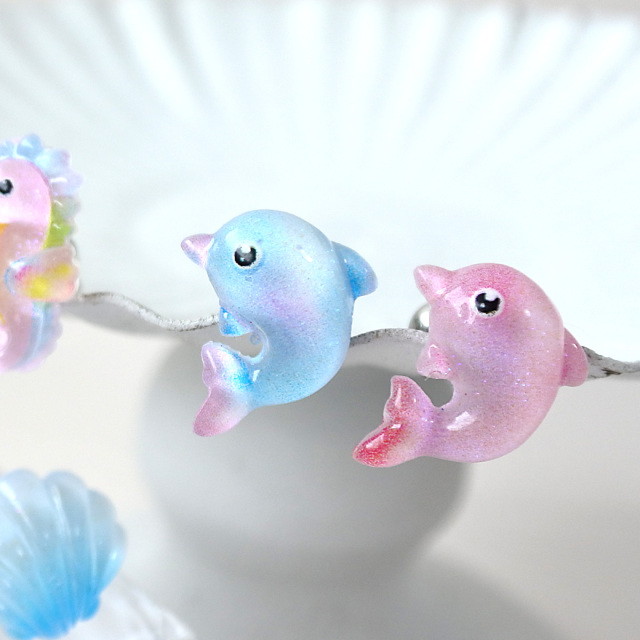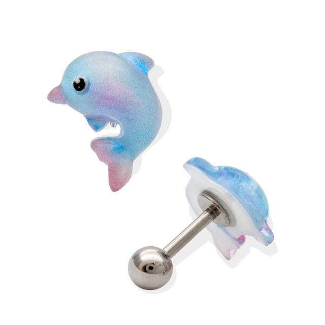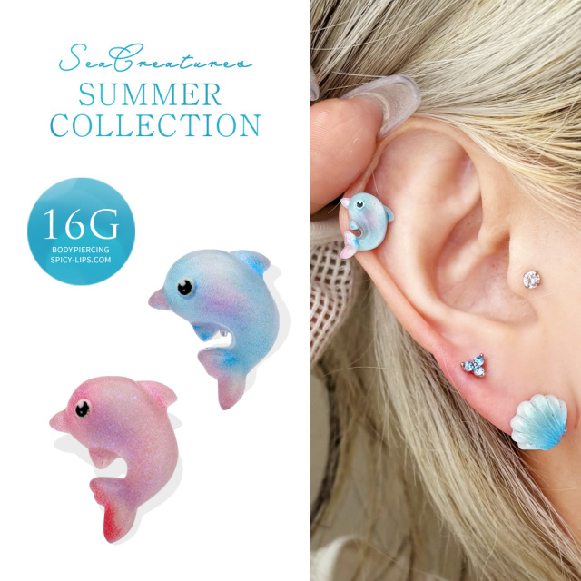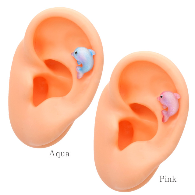 [16G ] ぷっくり可愛い♪ 透明感のある イルカ モチーフ 海の生き物 ストレート 軟骨ピアス ヘリックス ボディピアス 1051