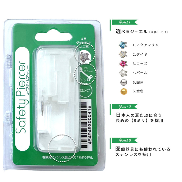 安心のJPS耳たぶ用/片耳用セーフティピアッサー