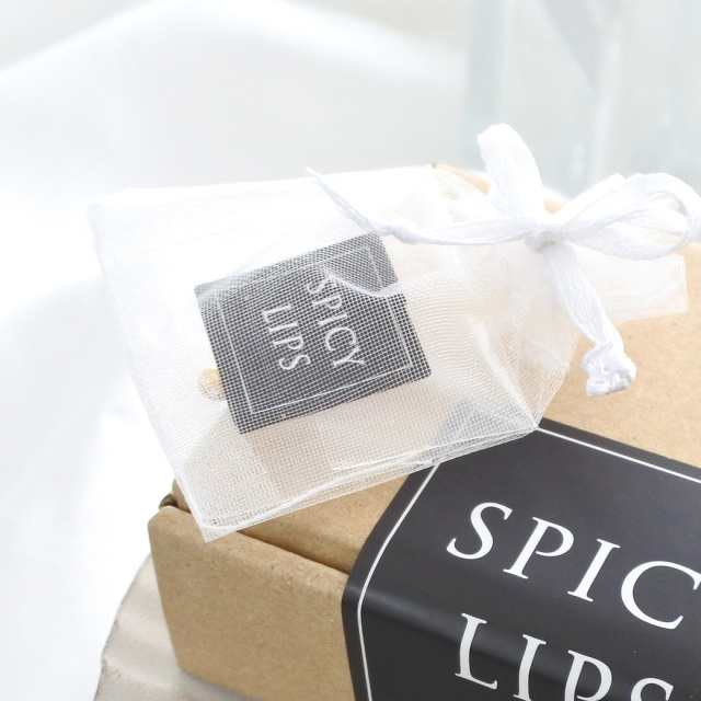 ホワイトのオーガンジーの巾着とボックスのセットとなります。